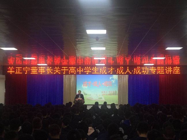 10月9日下午,羊正宁董事长在启升中学崇德楼报告厅给高二级八百多名师生做了“成才、成人、成功”专题讲座,师生反响强烈达到了预期的效果。讲座由赵五成校长主持。报告厅座无虚席、师生凝声静气、洗耳恭听羊董事长的励志故事。“我曾经是个农村孩子”、“我也是一个专业生”、“我上小学、初中时并不是一个好学生”、“我不甘平庸”。这些朴实的语言、蕴含哲理的故事,引起师生的共鸣,博得了阵阵掌声。