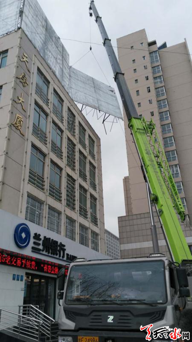 天天天水网讯(通讯员 赵懿) 3月24日,随着龙城广场昊泰大厦楼顶、金龙大厦楼顶大型门牌广告安全拆除,秦州主城区大型广告牌基本拆除完毕。