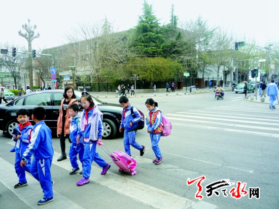 天天天水网讯【记者蔚军平】3月26日14时,在秦州区民主路市百货大楼十字路口的斑马线上,一辆机动车礼让斑马线,几名小学生安全顺利地通过斑马线。