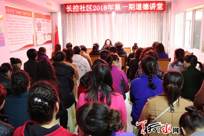 当日,秦州区七里墩街道长控社区举办了2018年第一期道德讲堂。近年来,七里墩街道长控社区通过“道德讲堂”一系列活动,使得社区的文明程度不断提高,并形成了“我为人人、人人为我”的社会好风尚。天天天水网记者 杨晓斌 摄