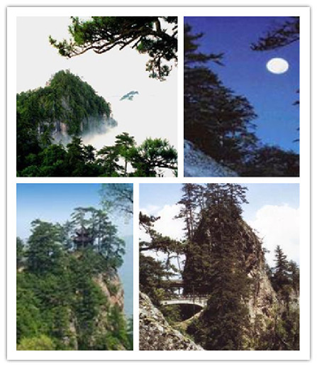 石门山位于甘肃天水市北道区东南方向50公里的陇南山区,素有“甘肃的小黄山”之称。其山壁立千仞,四周峭崖,只有一条小路联接南北两峰,且南北峰之间的聚仙桥下石壁上,有一大方形黑浑圈 ,状若门楣 ,故名石门山。相传有虎豹出没,俗称卧虎台。石门山景色壮美,有小黄山之称。主峰上有明、清重修的真武祠、王母祠、三清殿、无量殿、玉皇殿和钟楼,峰间架通仙桥亭,从石门山脚下五阳观登山,上十八盘,山势蜿蜒,环绕攀登,古雅峥嵘的殿阁台榭掩映于白云翠微之中,景色迷人。中秋夜,皓月仿佛从石门缝中徐徐升起,变幻无穷。石门月夜,意趣盎然,为天水十景之一。主要有斗姆、兴龙、黄天、玉灵、麒麟五座山峰。石门山景区保存有明、清两朝的古殿宇二十余座以及塑像二十余尊。