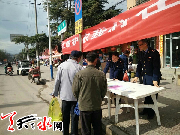 该局各基层工商所在街道、市场、村落等人群聚居区设立咨询服务台9处,制作悬挂宣传横幅9幅,向社会群众发放宣传资料2080份,在农村充分利用逢集日,现场面向农民群众宣传《消费者权益保护法》、《种子法》、《产品质量法》等法律、法规,讲解在农业生产中如何购买农药、化肥、种子,如何提高辨假识假的常识,现场解答农民朋友提出的疑难问题,接受群众咨询300余人次。