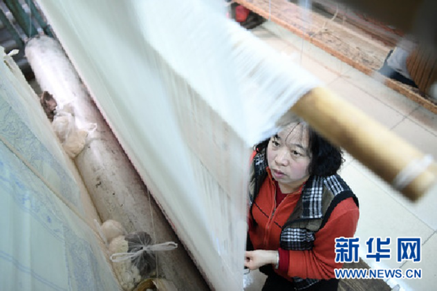 织工正在编织丝毯。 新华社记者陈斌摄
