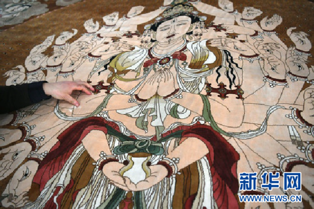 佛教主题丝毯作品。 新华社记者陈斌摄