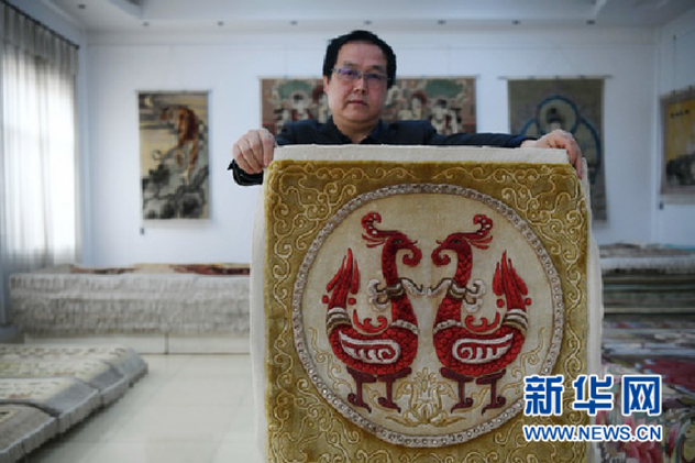 刘静波展示丝毯作品。 新华社记者陈斌摄