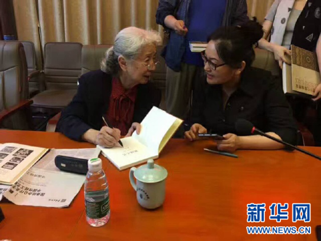 王利珍向中国著名艺术设计师常沙娜取经。新华社发图片由被访者提供。