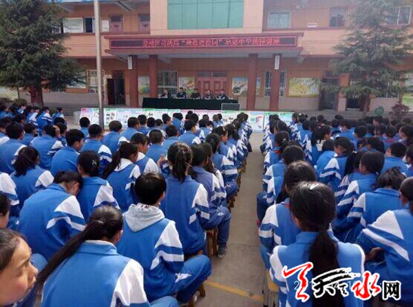 天天天水网讯【记者杨旭】4月10日下午,秦州区司法局在全区中学开展的送法进校园巡回宣讲活动来到皂郊中学,进行了本次活动的首场宣讲。
