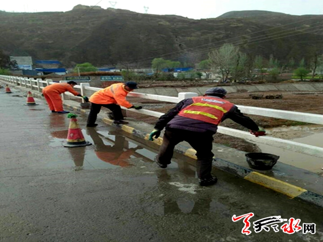 天天天水网讯(通讯员 乔俊)近日,武山公路管理段结合公路桥隧隐患排查行动对辖养区域内的桥梁栏杆、防撞墙、护柱等进行清洗、刷新,为它们换上新颜;对缺损的安全防护设施及警示标志进行更换、维修;对桥梁伸缩缝、泄水孔内的杂物进行彻底清除,确保功能正常发挥。通过以上举措全力消除公路安全隐患,保障车辆安全通行,同时也改善了公路沿线安全防护设施的面貌,有效推进了路域环境整治工作。