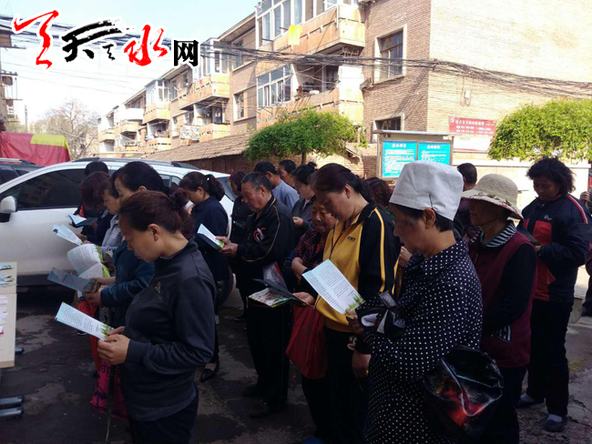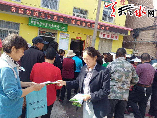 天天天水网讯(通讯员吴娟)2018年4月份是第三十个“爱国卫生月”。为进一步提高辖区居民群众环境卫生文明意识,营造清洁、整齐、优美的生活环境,提高社区整体卫生水平,4月19日上午,王家磨社区开展第三十个“爱国卫生月”宣传活动。