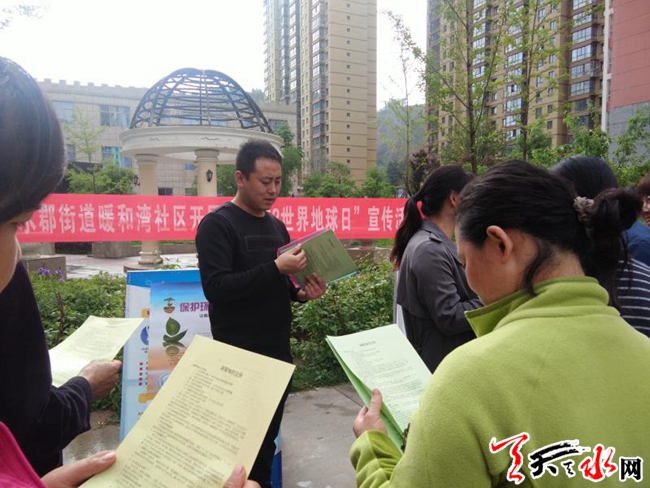 天天天水网讯 为在辖区营造善待地球、投身环保的浓厚氛围,在第四十九个“世界地球日”来临之际,天水郡街道暖和湾社区于4月20日上午紧紧围绕“珍惜自然资源 呵护美丽国土——讲好我们的地球故事”的宣传主题,在辖区开展了大型环保宣传活动。