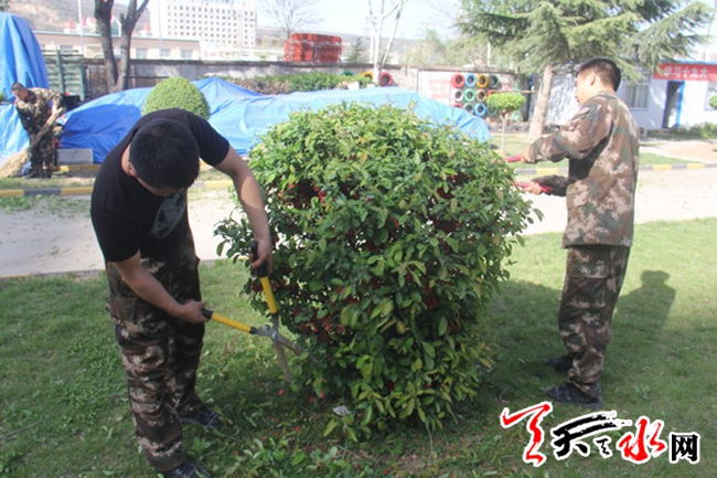 天天天水网讯 春回大地,万物复苏。为进一步美化营区,搞好营区緑化建设,进一步增强全体官兵主人公意识,积极推进营区美化建设,全力构建绿色警营,为官兵创造栓留人心,和谐舒心的良好的生活环境。4月21日,天水郡消防中队全体官兵齐动手展开营区绿化,营区美化活动。在活动过程中,中队官兵撸起袖子,拿起铁铲,剪刀战斗在草坪中。全体官兵干劲十足,积极参与,全部都投入到此次活动中。大家分工明确,有说有笑,整个中队呈现出和谐友爱的景象。通过大家的共同努力,原本杂乱无章,参差不齐的草坪又恢复了平整,草坪中散发出了生机勃勃的气息,为全体官兵在日常生活中创造了一个良好的环境。