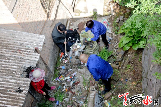 天天天水网讯 为落实“绿染海林.全域无垃圾”创建活动,按照随时发现、全体动员、及时清理的原则,4月25日下午,七里墩街道海林社区组织党员干部、辖区志愿者、海林物业保洁人员等共10余人,对新发现的一处卫生死角开展环境卫生大扫除。