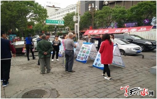 天天天水网讯【通讯员 安冬梅】为提高辖区居民群众识毒、防毒、拒毒的意识和能力,近日,自治巷社区在移动公司门前开展以“珍爱生命、拒绝毒品”为主题的宣传活动。