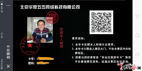 本次发放的旅游年卡为电子卡,没有实体卡,使用人免费领取两张有品位旅游年卡的卡号和密码后,按照激活流程激活年卡即可使用,使用人需要准备一部具备上网功能的手机,而且手机里要有微信。