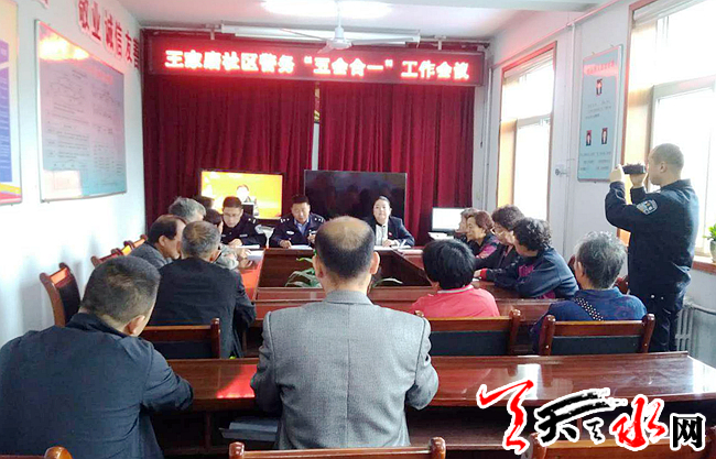 天天天水网讯(通讯员吴娟)5月4日上午,天水郡街道王家磨社区召开4月份社区警务“五会合一”工作会议,会议通报了王家磨辖区4月份警情,并对辖区社会治安进行了分析研判。社区干部、民警以及居民小组长共23人参加会议。