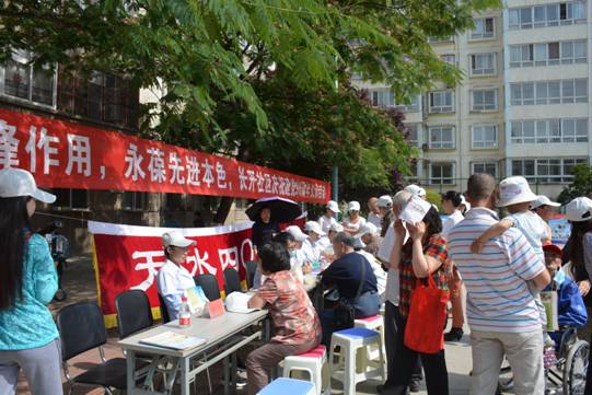 社区志愿者进小区、院落,通过横幅、宣传单页、LED等方式广泛开展“关注小环境 共享大健康”主题宣传。在活动现场,志愿者们耐心地为广大群众讲解了“厕所革命”工作的重要指示、近期社区采取的改善周边居住环境的各类有效严查整治措施及行动、居民健康生活方式方法等方面的内容,不断普及环保知识,引导群众养成绿色文明的生活方式,同时清理了小区内绿化带垃圾,树立了17块卫生环保警示牌。