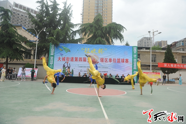 5月6日,在秦州区大城街道办事处举办的第四届辖区单位篮球邀请赛暨“征收杯”篮球联谊赛上,一位队员的补篮动作引来观众的一阵欢呼和赞叹。