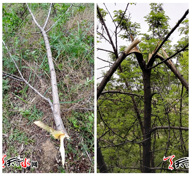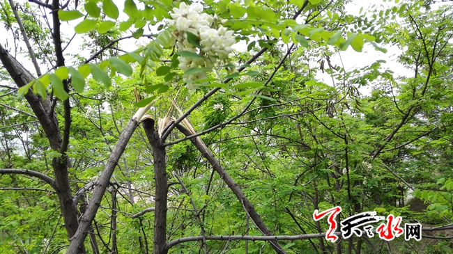 最近以来,在靠近城区的红旗山、杨家山、皇城等路边、山上,屡见被折断的槐花树,有些树枝已被扳断,显出白花花的树茬子;有些树枝断了却还连着树皮耷拉着挂在树上……让人不忍目睹。