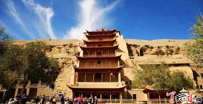 敦煌市,是甘肃省酒泉市代管的一个县级市,位于甘肃省西北部,历来为丝绸之路上的重镇,是国家历史文化名城。敦煌东峙峰岩突兀的三危山,南枕气势雄伟的祁连山,西接浩瀚无垠的塔克拉玛干大沙漠,北靠嶙峋蛇曲的北塞山,以敦煌石窟及敦煌壁画而闻名天下,是世界文化遗产莫高窟和汉长城边陲玉门关及阳关的所在地。