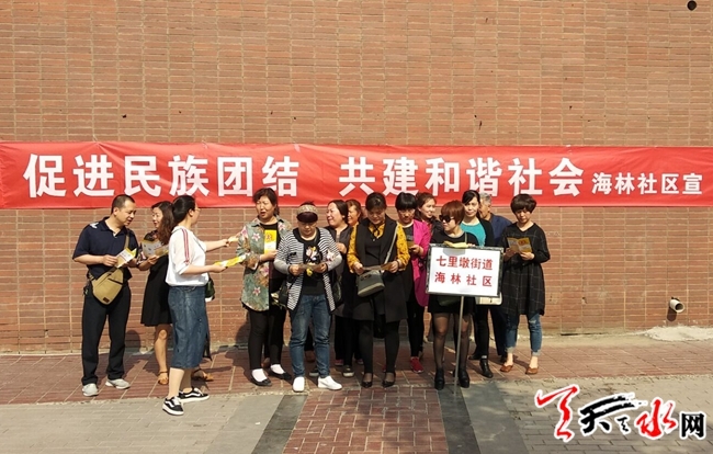 天天天水网讯 为了进一步加强社区各民族的团结工作,构建和谐幸福社区。5月15日上午,七里墩街道海林社区在天河广场举办了“促进民族团结、共建和谐社会”为主题的宣传活动,辖区少数民族居民代表共30余人参加了此次活动。