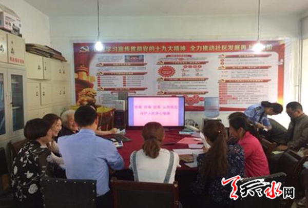 天天天水网讯(通讯员 韩雪梅)为进一步提升辖区广大居民“识毒、防毒、拒毒”的思想意识,让禁毒知识走进千家万户。5月20日上午,天水郡街道瀛池社区联合社区包片民警吕斌、武爱红,开展了以“禁毒知识进社区 进家庭”为主题的禁毒宣传活动,社区片警吕斌主要向大家普及了《禁毒法》、《预防和反邪教法》、等方面的禁毒知识,并就居民群众在日常生活中遇到的“热点”、“难点”问题进行了详细地解答。