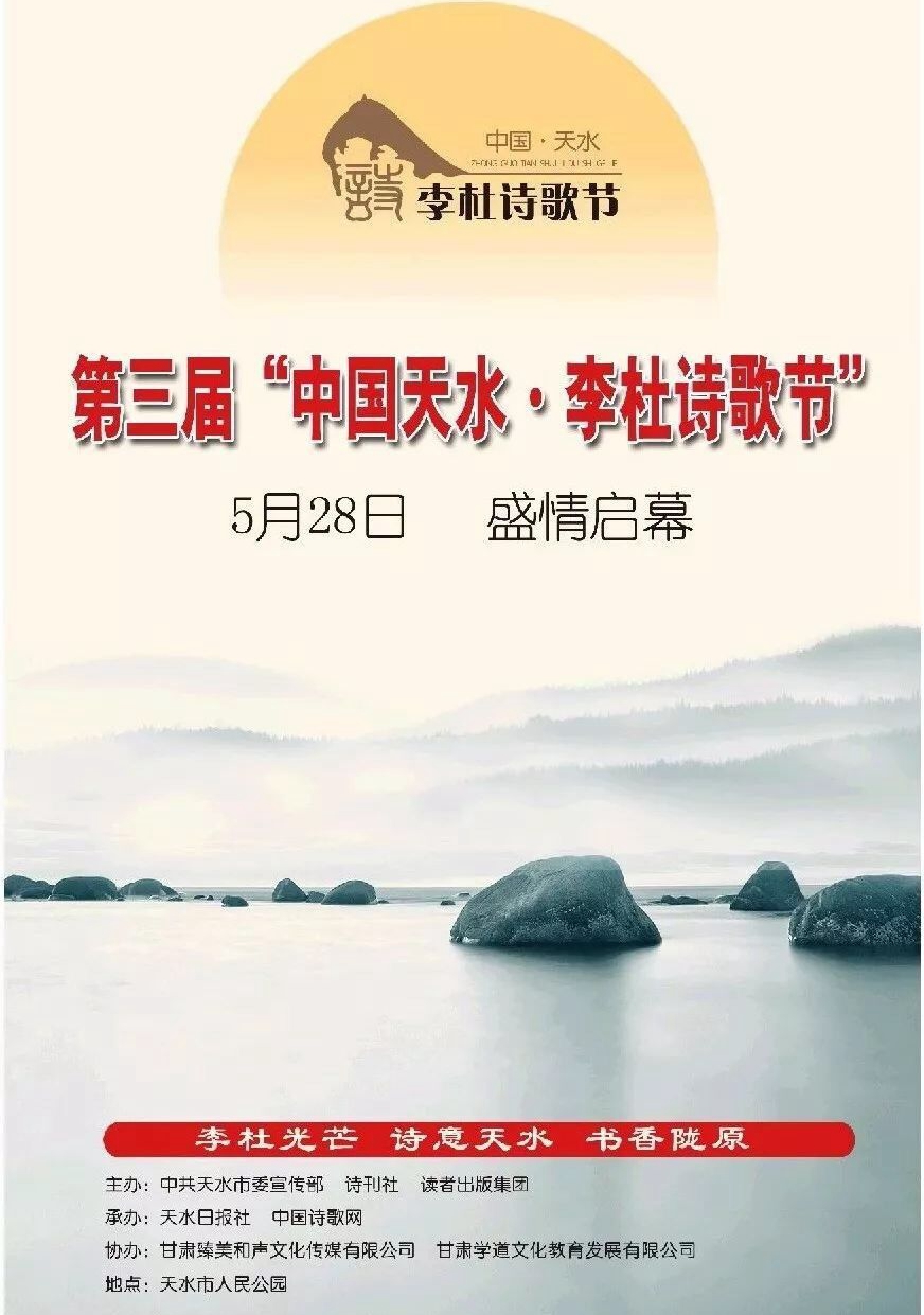 天天天水网讯【记者 胡碧波】5月28日,由中共天水市委宣传部、诗刊社、读者出版集团主办,天水日报社、中国诗歌网承办的第三届“中国天水·李杜诗歌节”将盛装开幕。来自浙江、北京、陕西、山西、辽宁、甘肃等地的著名诗人、作家、评论家,“著名作家、评论家雷达故里行”采风团成员,甘肃省作协和天水晚报联合主办的《陇东南实力作家联展》部分作者及天水诗人、作家和市民,将参加在天水市人民公园举行的开幕式。