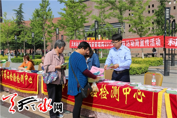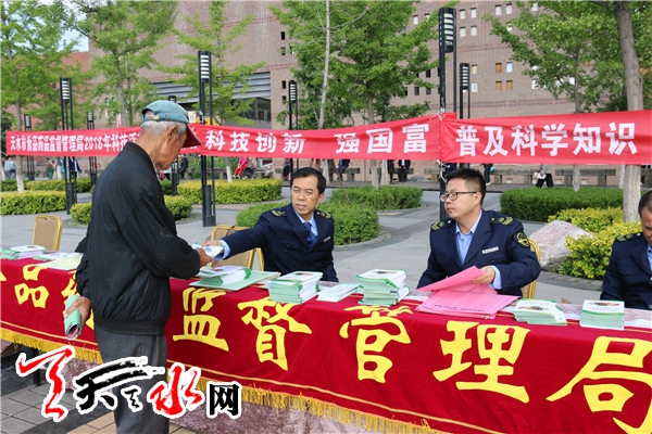 天天天水网讯 5月25日,天水市食品药品监督管理局在秦州区天河广场举行了以“科技创新、强国富民”为主题的2018年“科技活动周”食品药品安全科普宣传活动。天水市食药监局及各直属单位、秦州区食药监局相关人员现场参加了宣传活动。