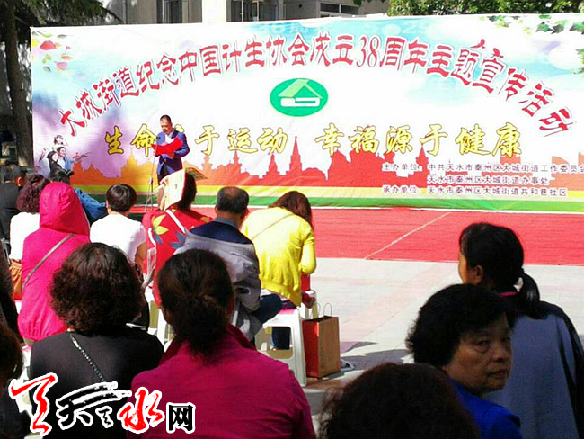 天天天水网讯(通讯员张勇杰)5月29日,是中国计生协会成立38周年纪念日,也是第二十个协会会员活动日,天水市秦州区大城街道办事处在天水市公园小广场举办了以“生命在于运动幸福源于健康”为主题的健康达人现场演示活动暨中国计生协会成立38周年纪念活动。