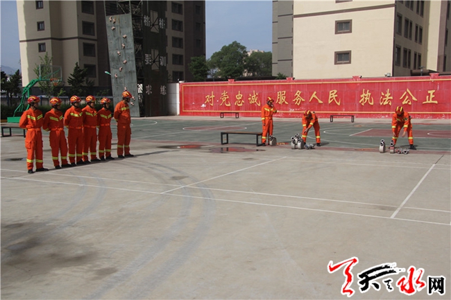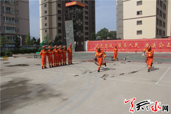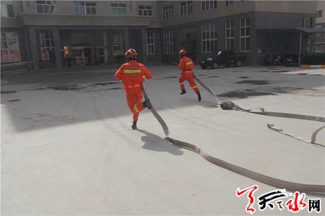 天天天水网讯(通讯员安端)为增强全体官兵消防业务素质,增强官兵灭火救援打赢能力,5月25日上午,甘谷中队结合实际,有针对性的组织开展了两盘水带连接操训练。