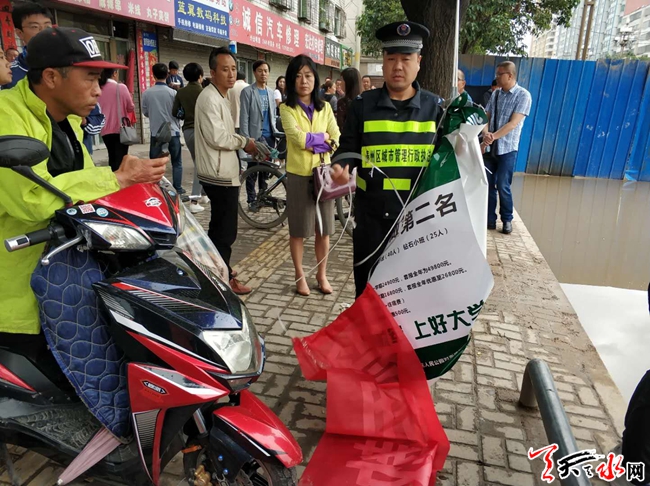 图:秦州执法局天水郡中队的队员在四中考点周边维持秩序