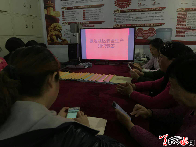 天天天水网讯(通讯员 韩雪梅)为进一步推进安全宣传教育活动,营造良好的安全生产宣传氛围,提高社区干部、居民对应急和安全生产知识的知晓率,6月7日下午,瀛池社区开展了应急和安全知识竞赛活动。