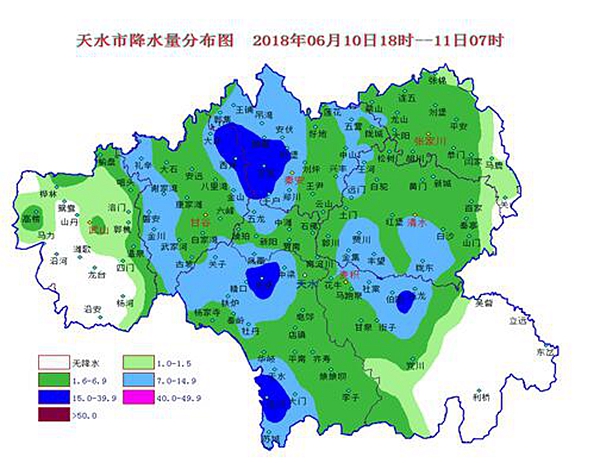 天天天水网讯 据天水市气象台消息 受冷空气和西南暖湿气流影响,10日傍晚至夜间,我市自北向南出现强对流天气,秦安王铺、魏店、郭嘉,武山洛门、温泉、咀头,甘谷磐安、大庄、金山、礼辛,张家川刘堡等乡镇出现冰雹,最大冰雹直径1.5厘米;甘谷、麦积、秦州部分乡镇出现短时强降水,最大小时雨强为麦积肖王30.4mm。截止11日07时,全市有11个监测站雨量超过20毫米,最大累计雨量出现在麦积区新阳镇肖王,达34.6毫米。