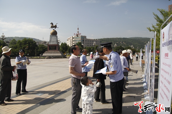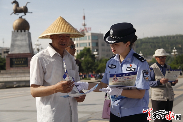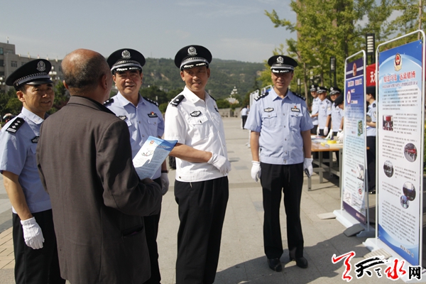 副市长、市公安局局长马瑛,副局长肖勇等参加了市公安局和秦州公安分局在七里墩天河广场联合开展的集中宣传活动。