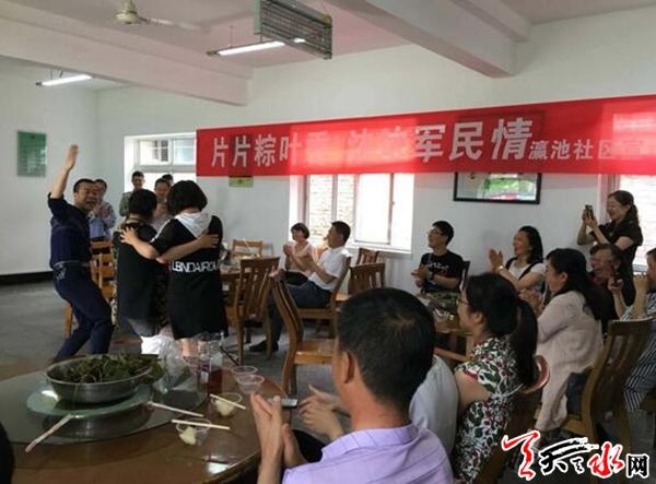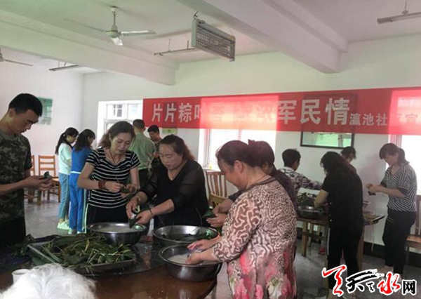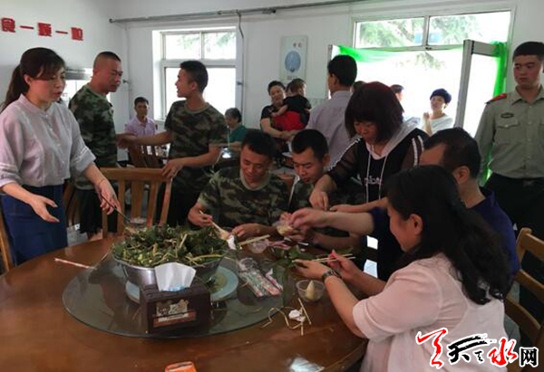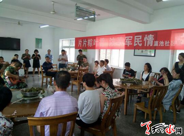 天天天水网讯(通讯员韩雪梅)在传统的端午佳节来临之际,天水郡街道瀛池社区邀请辖区单位代表、孤寡老人、残疾人、优抚对象以及党员志愿者,走进天水郡消防中队开展了“片片粽叶香,浓浓军民情”包粽子邻里文化周活动。