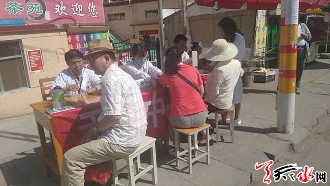 义诊活动的内容非常丰富,包括问诊、测血压、健康咨询、养生宣讲等项目。在活动中不断有居民前来咨询,医护人员对居民提出的健康问题给予现场解答,并对夏季饮食、疾病预防的保健常识进行宣传。有高血压、糖尿病的居民,医务人员还详细询问是否按时服用降压药、降糖药,叮嘱他们及时服药,定期监测血压、血糖,并根据居民的身体状况和饮食情况给予合理建议。