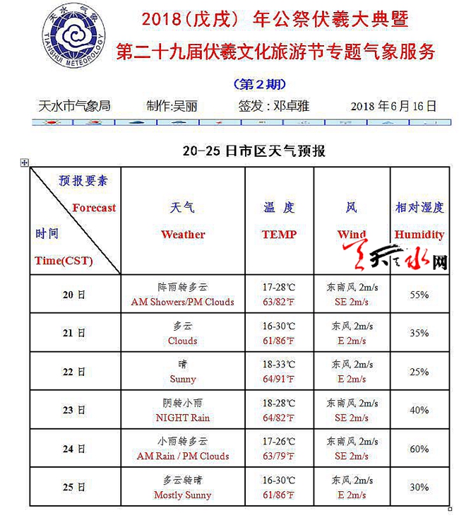 来源: 天水市气象局    编辑: 姚宇 2018-06-18 09:14:16 星期一     字体设置:
