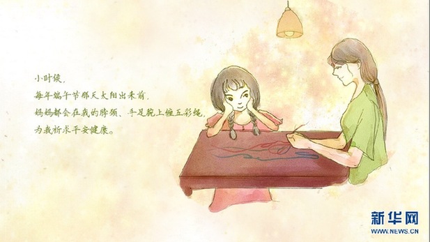 小时候,每年端午节那天太阳出来前,妈妈都会在我的脖颈、手足腕上缠五彩绳,为我祈求平安健康。