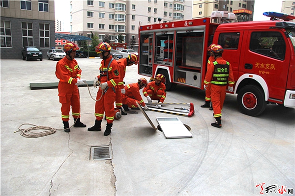 天天天水网讯(通讯员 安端)为切实提高部队的抢险救援能力,增强部队的凝聚力和战斗力,6月11日下午,甘谷中队立足现有装备、设施,结合实战需要,组织官兵开展了深井救援三脚架训练。