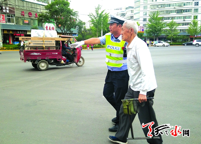 “大爷,您不能从这里走,请您从斑马线上通过;这位女士,现在是红灯,请耐心等候;孩子们注意脚下,不要着急乱跑,要看信号灯过马路……”6月19日下午5时许,见到市公安局秦州分局城区交警大队二中队中队长何维春时,他正忙着在中城十字指挥交通。