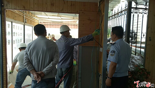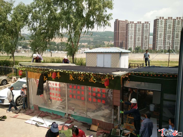 据了解,该中队执法人员在辖区内正常巡查时发现,籍河南路某酒店隔壁停车场上有一处搭建彩钢房作为洗车房的行为,立即展开询问。经查,该洗车房系某酒店为方便自己使用所搭建,且没有任何审批手续。为此,该中队执法人员向酒店负责人进行了相关法律法规的宣传,并告知其建筑属违章建筑,需进行拆除。在执法人员说服教育下,酒店负责人表示愿意拆除同时恢复场地原貌。截至20日下午,该中队在专业拆除人员的协助下,成功拆除了该违章建筑,维护了城市良好的市容环境。