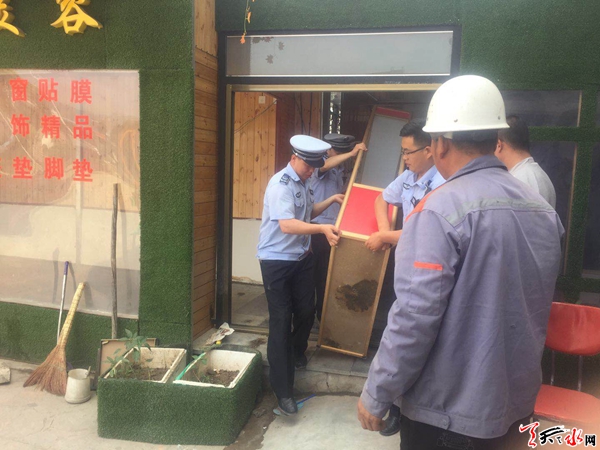 天天天水网讯【通讯员 沈彦斌】6月20日,秦州区执法局机动二分队执法人员依法对籍河南路某酒店隔壁停车场上违章搭建的一处洗车房进行了拆除,面积约60平方米。