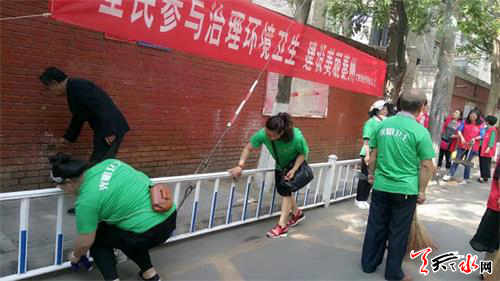 天天天水网讯(通讯员傅洁心)伏羲文化节来临之际,大城街道光明巷社区召集“光明卫士”志愿者、辖区党员志愿者50余人在辖区开展节前卫生大整治,重点清理“牛皮鲜”小广告、绿化带垃圾、小吃街卫生死角等,志愿者们热情高涨,干劲十足,力求以干净整洁的辖区环境迎接伏羲文化节。
