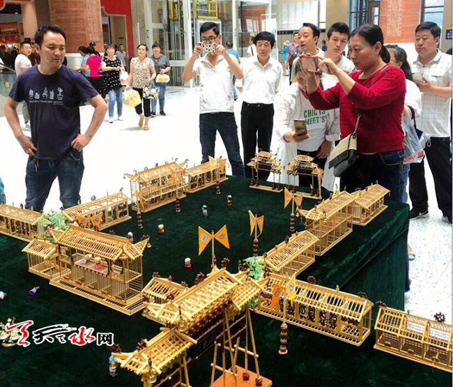 6月21日,吴天祥老人用竹子编的微型伏羲城亮相会展中心,立即引来市民的围观,大家纷纷摄影摄像。