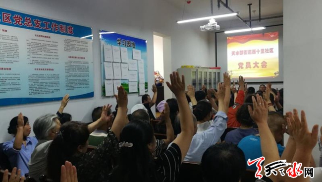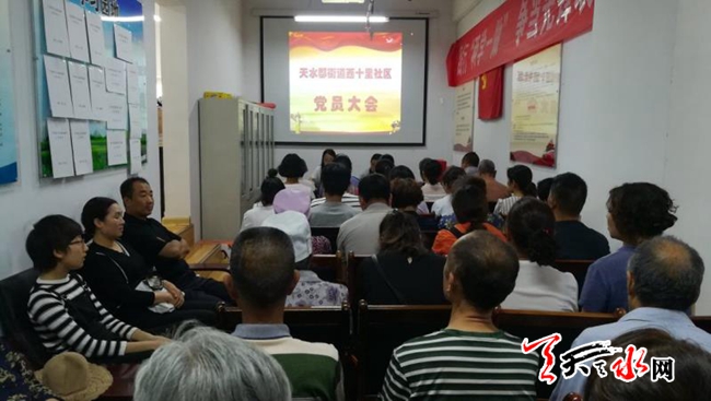 天天天水网讯 为了进一步推进社区党组织工作,按照《中国共产党章程》和上级党组织的有关规定,6月21日下午,秦州区西十里社区在社区会议室召开了党员大会,选举产生了新一届党委委员,召开了委员会议,选举产生了党委书记、副书记。选举大会由天水郡街道计生办主任刘海生同志主持,社区干部、党员共81人参加此次会议。