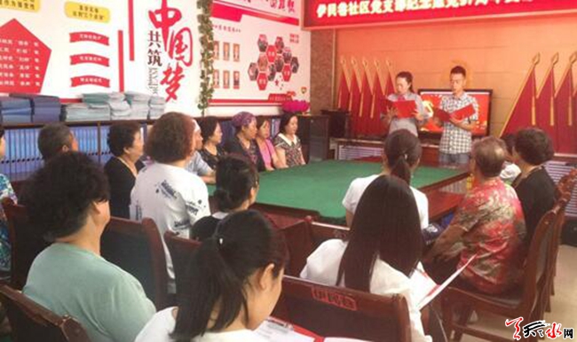 天天天水网讯(通讯员 任秀娟)为纪念建党97周年,进一步推动支部和广大党员深入贯彻落实习近平新时代中国特色社会主义思想和党的十九大精神,推进支部“两学一做”学习教育常态化制度化,树牢“四个意识”,增强“四个自信”,伊民巷社区党支部开展了一系列建党97周年支部主题党日活动。
