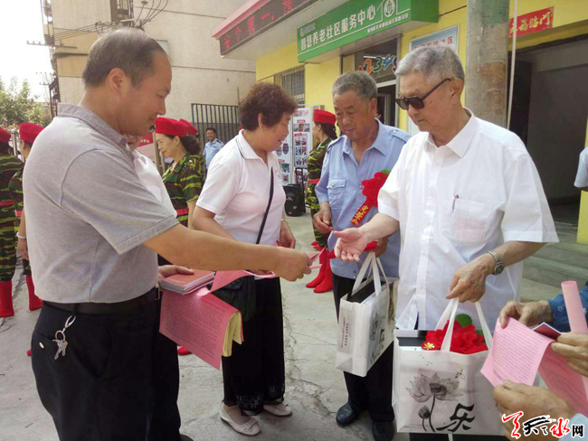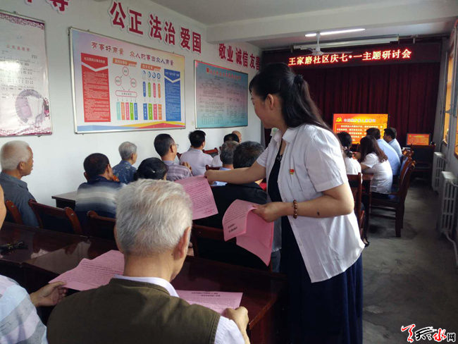 天天天水网讯 为纪念中国共产党建党97周年,回顾党的光辉历史,讴歌党的丰功伟绩,使党员群众接受教育,增强广大党员及党组织的凝聚力、战斗力和号召力。2018年6月28日王家磨社区开展了系列庆“七一”活动。