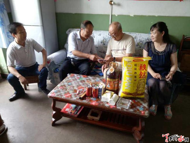 第六开展慰问困难党员送温暖活动。为了让困难党员感受到党的温暖,在“七一”建党节对王宝林、刘俊祥、赵德柱等8名困难老党员进行了走访慰问,为他们带去了党组织的关心慰问,并送去了米、油等生活用品。同时发放《宪法》宣传材料,进行了讲解宪法、宣传宪法。让党员群众提高法律知识,树立法制观念,增强法律意识。