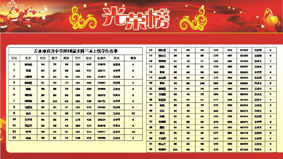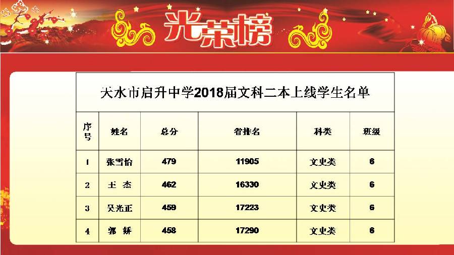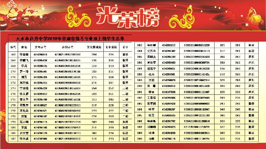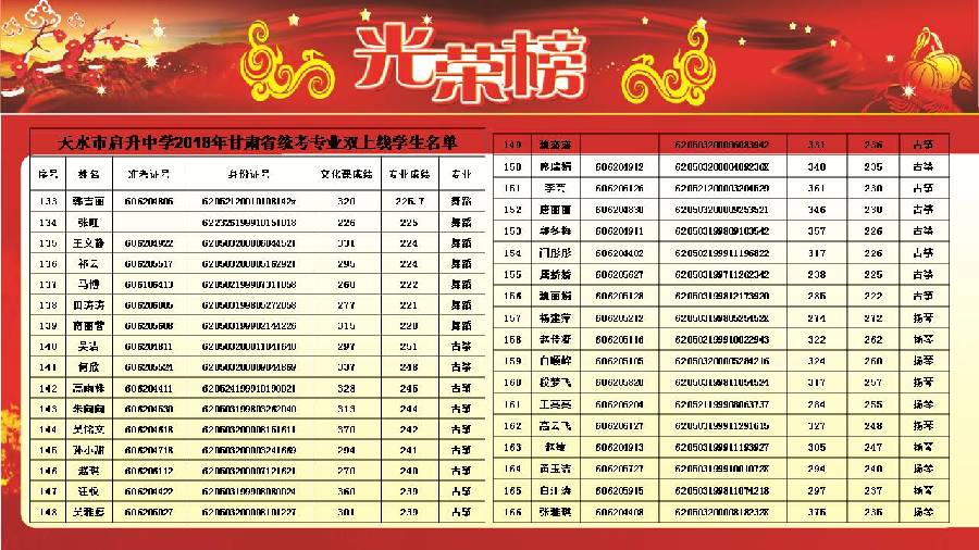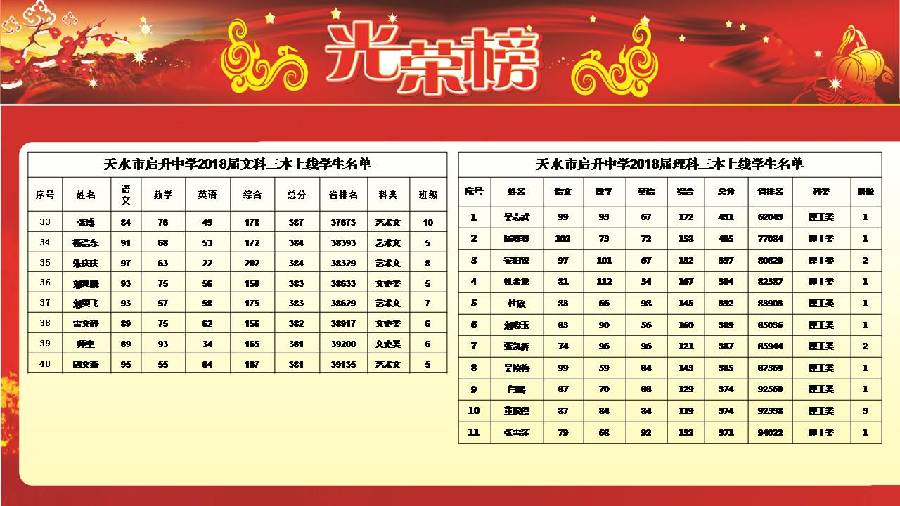 天水市启升中学2018年甘肃普通高考成绩光荣榜