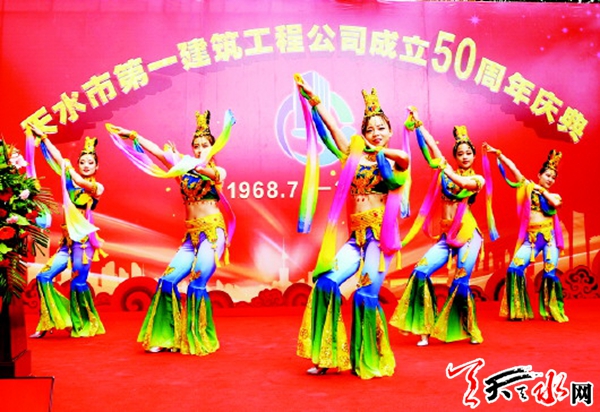 当日的天水一建,到处洋溢着喜庆、欢快的气氛。天水一建成立50周年庆典在一建大厦拉开了帷幕,尽情地展示她的风采,欣然接受各界友人真诚的祝福。