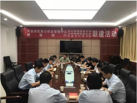 天天天水网讯 2018年7月6日上午,天水市住房公积金管理中心武山管理部党支部、甘谷管理部党支部、建行甘谷支行党支部共同开展联建活动,市住房公积金中心党总支书记、副主任杨志炜、市住房公积金中心总会计师秦毅学、市住房公积金中心党总支组织委员陈燕、武山管理部党支部、甘谷管理部党支部、建行甘谷支行党支部共计15名党员参加活动。